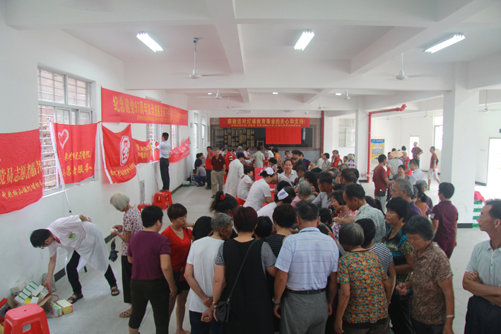 7月1日,泉州市光前醫(yī)院黨委攜手市皮防院黨支部,共同組織黨員醫(yī)務(wù)工作者、醫(yī)療專家們冒著酷暑來到南安梅山燈埔村,開展的“紀(jì)念建黨97周年義診送醫(yī)送藥下鄉(xiāng)進(jìn)村活動”。在燈埔小學(xué)禮堂里,參與義診的村民絡(luò)繹不絕,參加活動的黨員醫(yī)務(wù)工作者及專家們不顧汗流夾背,為廣大村民們檢查身體、量血壓測血糖和心電圖檢查等。