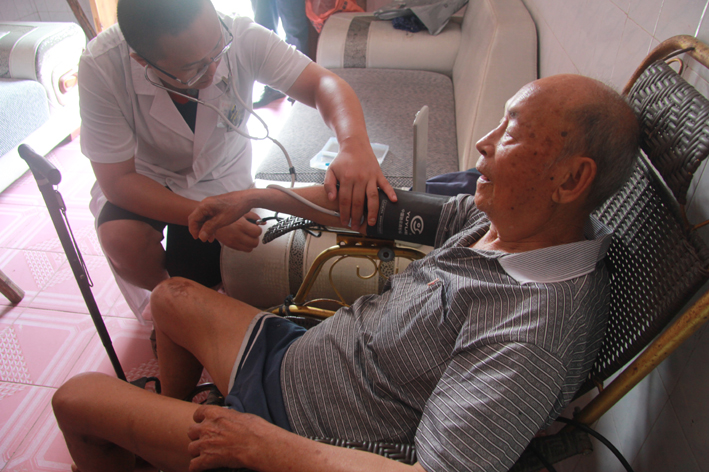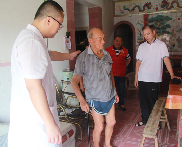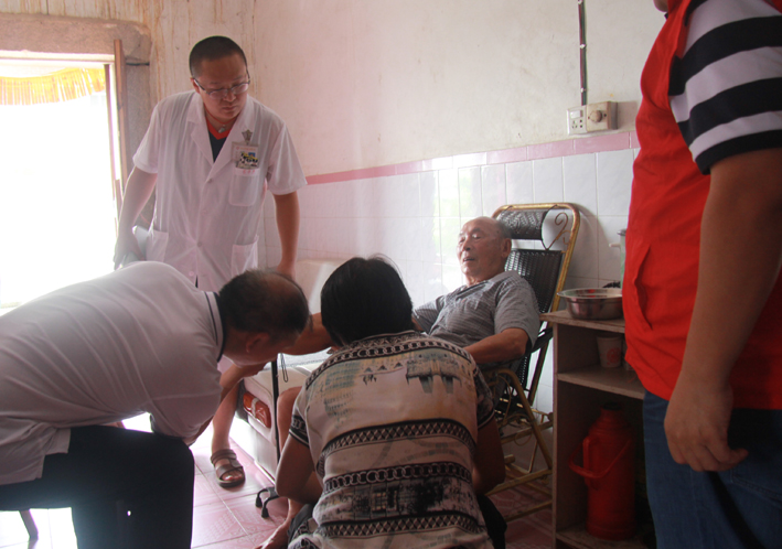 義診期間,黃向陽書記了解到村里有位患心血管疾病及皮膚病、行動不便的老黨員,立即選派醫(yī)護(hù)人員專程上門為其仔細(xì)體檢。面對送到家門的關(guān)懷,老人家倍感暖心。老黨員深情地握著專家的手,對專家們的感激之情,對黨和組織的感恩之心,溢于言表。