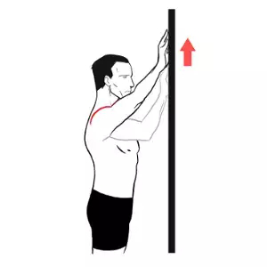 爬墻訓(xùn)練:左手扶手術(shù)后的右側(cè)肩關(guān)節(jié),面對(duì)墻站立,在左手的幫助下,盡可能將右手向上做爬墻動(dòng)作,以不引起肌肉疼痛為宜。
