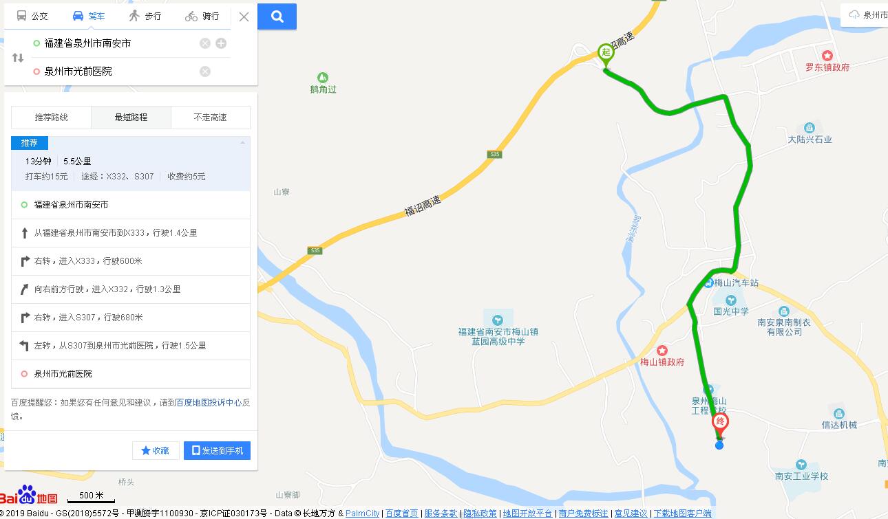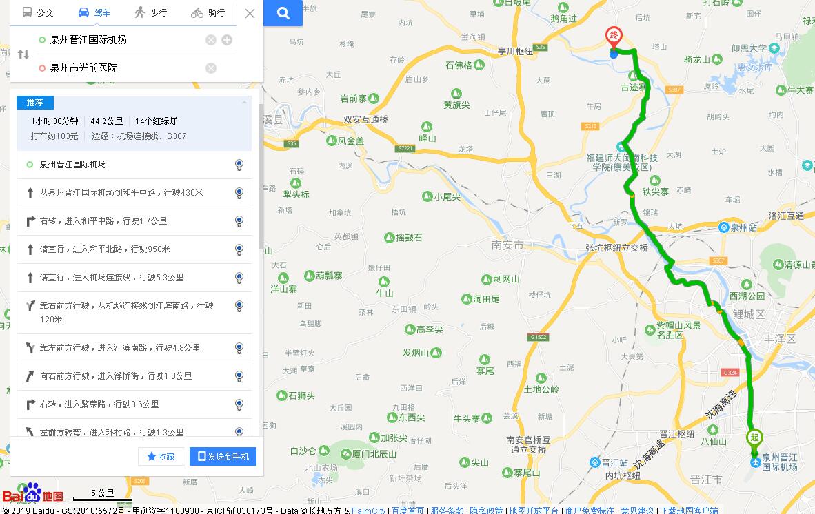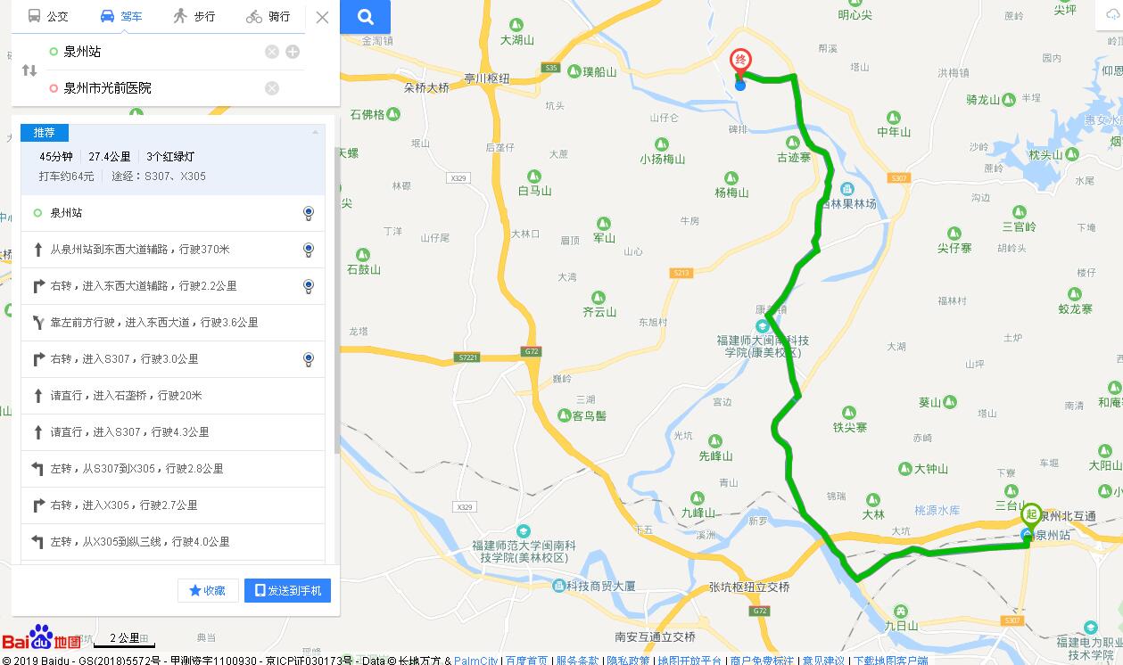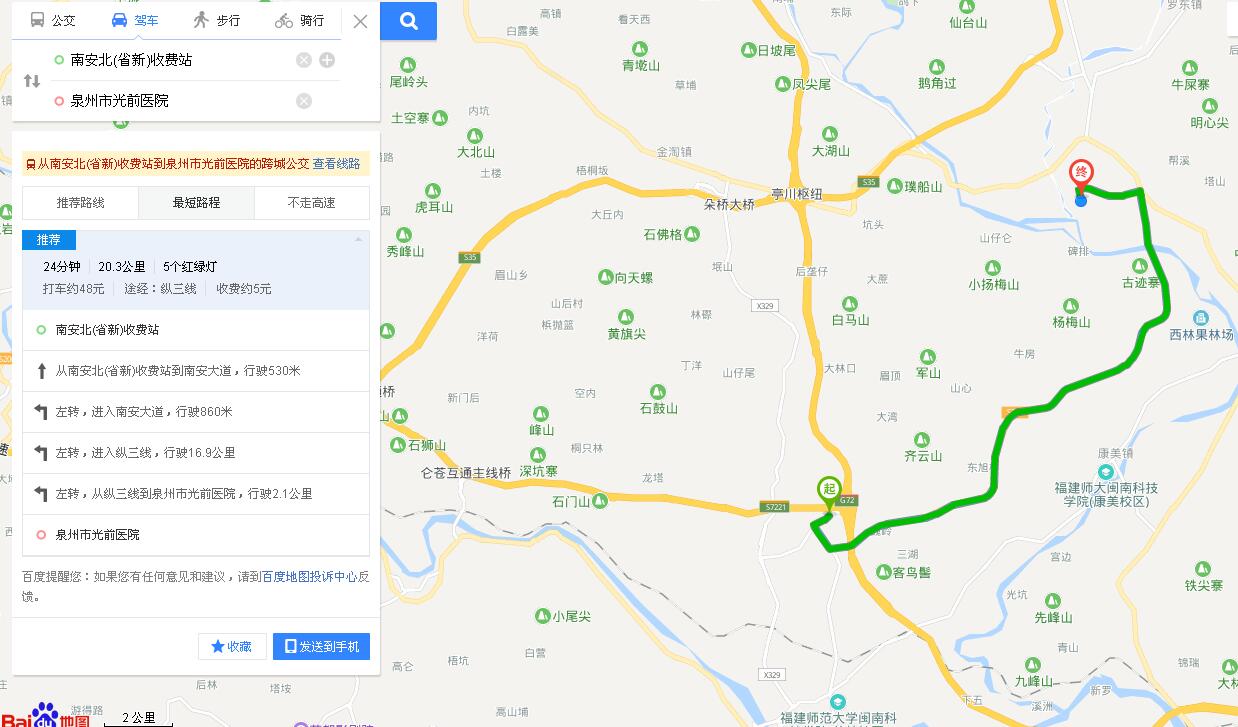 2.2 動(dòng)車(chē)泉州站經(jīng)高速至南安北出口后經(jīng)縱三線(xiàn)至泉州市光前醫(yī)院(50.4公里)