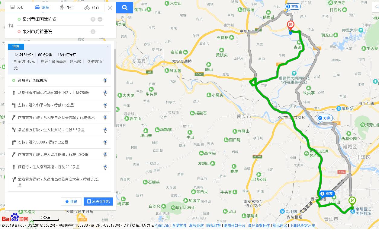 ????3.2泉州機(jī)場(chǎng)經(jīng)高速至南安北出口后經(jīng)縱三線(xiàn)至泉州市光前醫(yī)院(60.5公里)