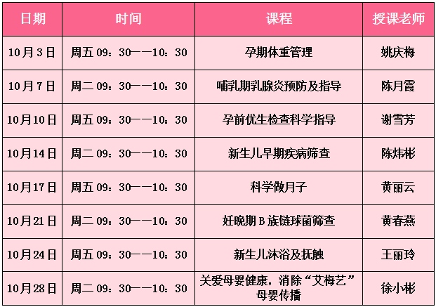 【孕婦學(xué)?!亢谩霸小毕喟椤袐D學(xué)校10月份課程安排表,請(qǐng)查收!