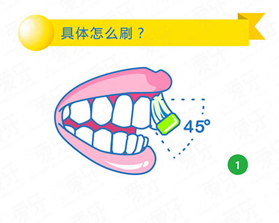1.將牙刷對(duì)準(zhǔn)牙齒與牙齦交接的地方。刷毛與牙齒大致呈45°角,同時(shí)將刷毛向牙齒輕壓,使刷毛略呈圓弧,牙刷側(cè)邊與牙齒有相當(dāng)大的接觸。