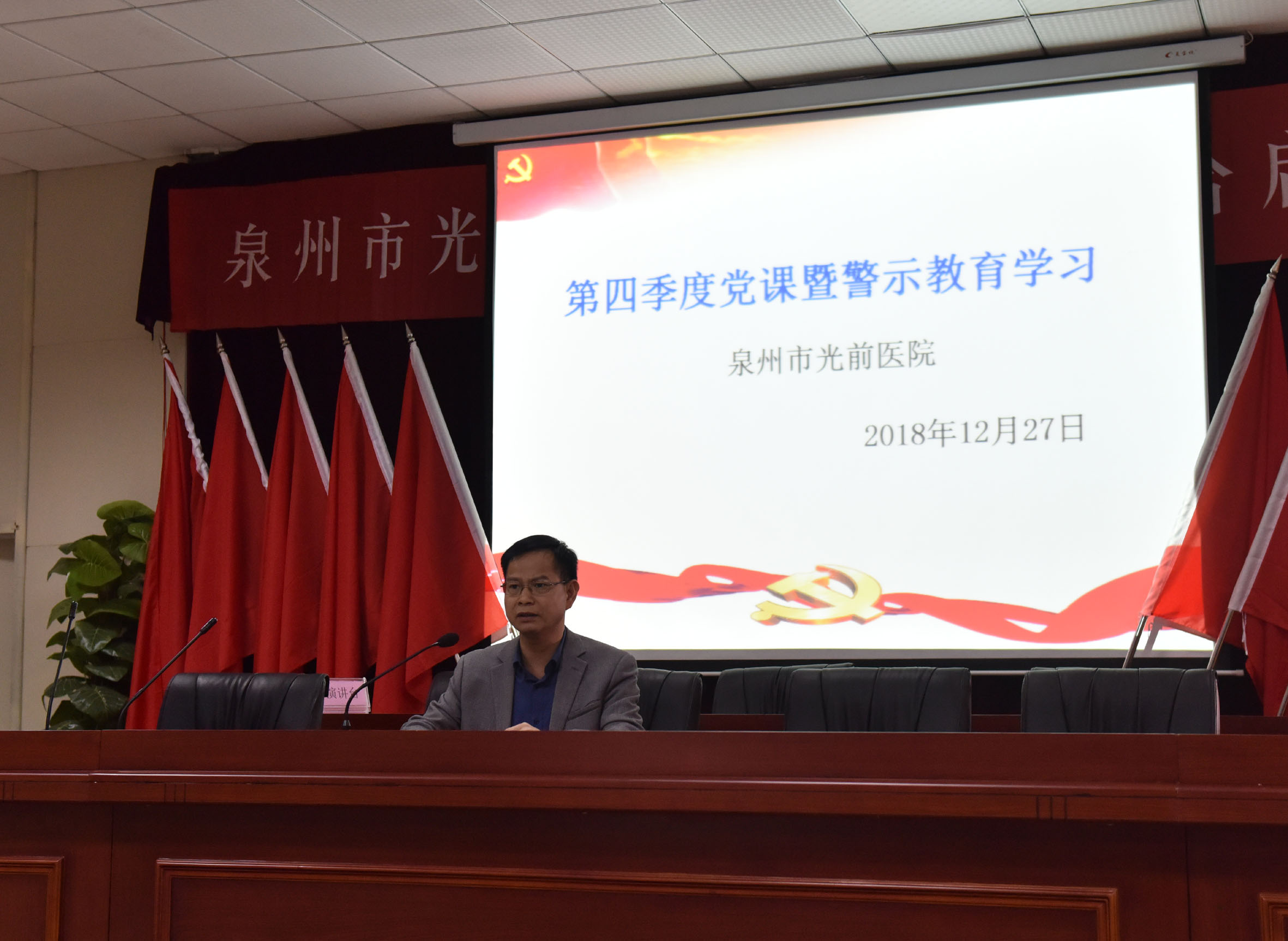 為進(jìn)一步推進(jìn)全面從嚴(yán)治黨和黨風(fēng)行風(fēng)廉政建設(shè),增強全院黨員和干部職工的廉潔自律意識,提高拒腐防變能力,12月27日下午,我院在行政辦公樓4樓會議廳舉行第四季度黨課暨廉政警示教育活動,組織全院黨員干部職工觀看警示教育片《折翅的天使》。本次會議由院黨委書記兼副院長黃向陽同志主持,全體黨員及醫(yī)務(wù)人員兩百余人參加。