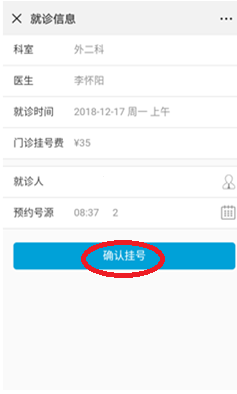 服務(wù)→預(yù)約掛號(hào)→選擇科室→選擇醫(yī)生→選擇預(yù)約時(shí)間→選擇預(yù)約號(hào)源→確認(rèn)掛號(hào)