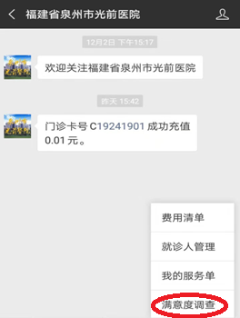 5、滿意度調(diào)查:我的→滿意度調(diào)查→門診滿意度調(diào)查或住院滿意度調(diào)查→參與調(diào)查