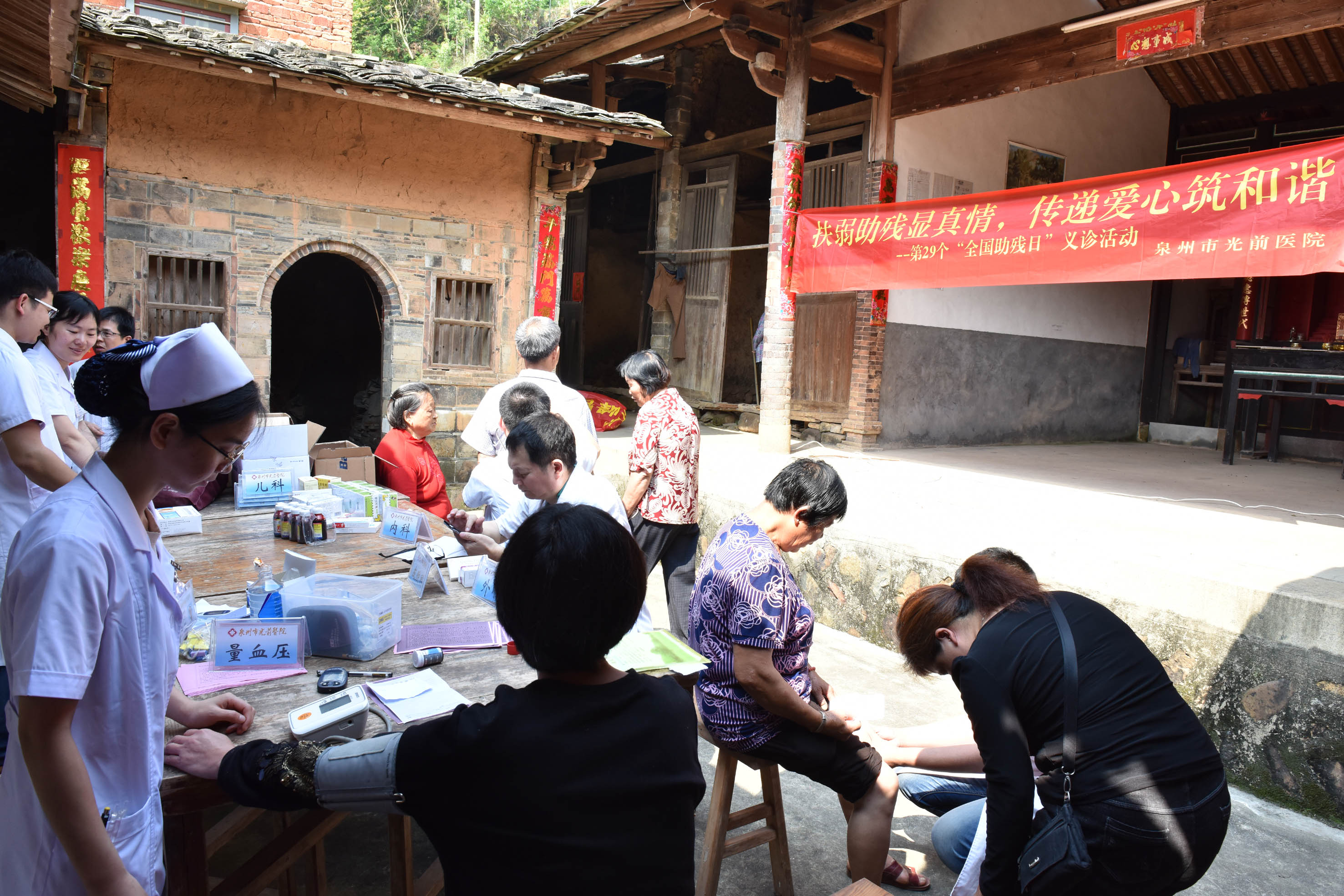 為迎接第29個全國助殘日的到來,4月25日上午,我院選派內、外、五官、皮膚、婦科、理療科等臨床經驗豐富的醫(yī)護人員組成志愿服務隊前往南安市樂峰鎮(zhèn)飛云村開展助殘日義診活動。