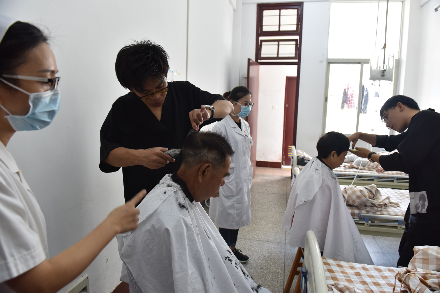 9月23日上午,我院黨員志愿者們攜手“視覺概念美發(fā)造型屋·福建省潘志超技能大師工作室”的愛心義剪師傅們下科室進病房,為行動不便和有需求的患者免費理發(fā)等服務(wù)。