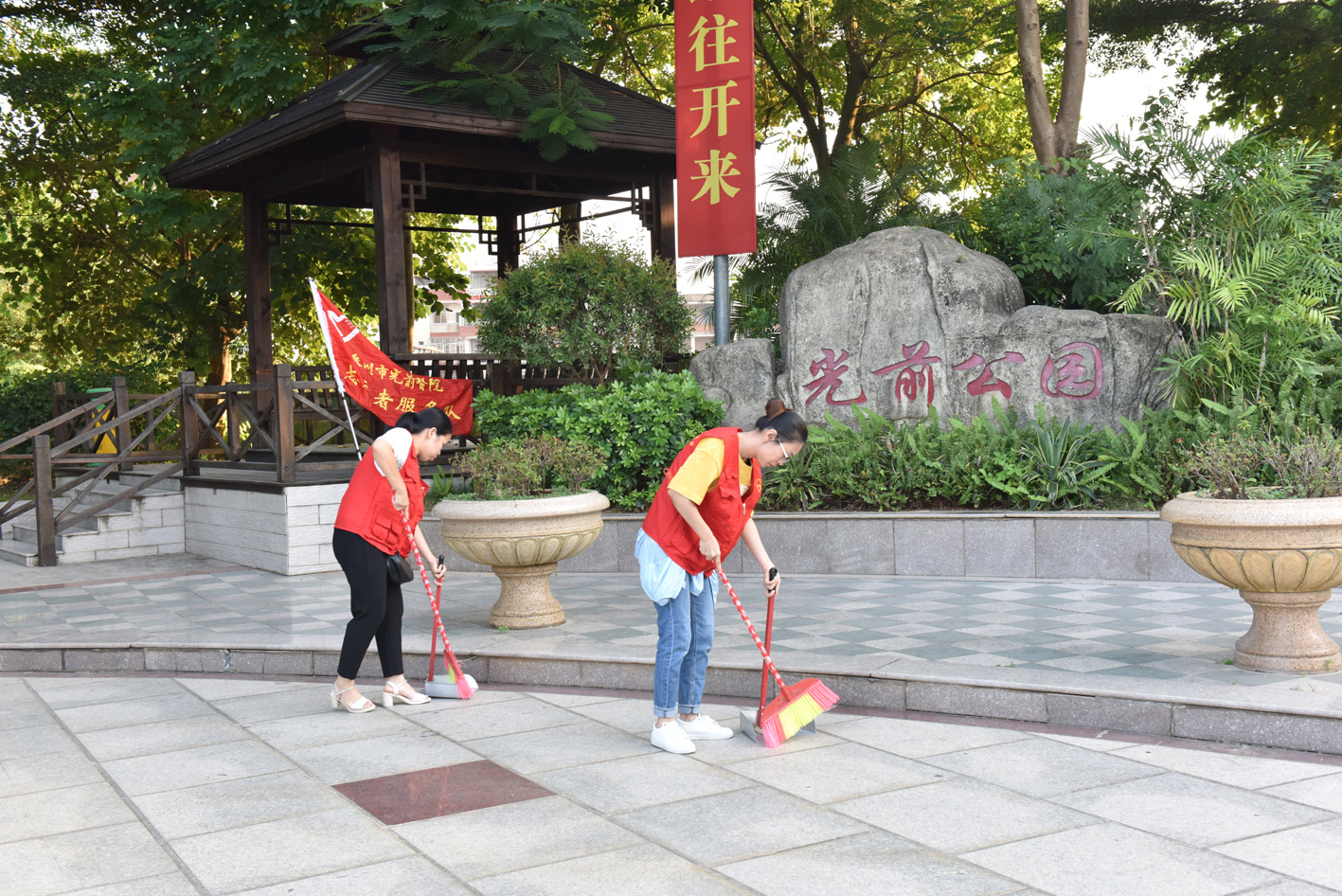 李光前故居紀念館參觀學習后,黨員、團員前往光前公園清掃垃圾,向周邊群眾分發(fā)宣傳單普及垃圾分類知識?;顒蝇F(xiàn)場,黨團員志愿者們熱情踴躍,兵分兩路,一組在公園內(nèi)清掃樹葉,撿拾紙屑、煙頭、塑料袋及其他廢棄物。另一組則在周邊向群眾分發(fā)垃圾分類宣傳單,并耐心向他們宣講垃圾分類知識。有位接孫子放學的奶奶給志愿者們豎起了大拇指:“我在電視上看得暈暈的,你這樣一說我就明白了,真厲害!”整潔的臺階、干凈的亭廊,晚風拂過一排排闊葉樹,整座公園在夕陽的余暉中靜好,志愿者們擦擦額頭的汗,臉上綻開了笑容。
