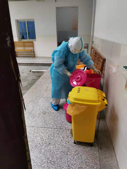 在隔離病區(qū)外,透過玻璃門,我們看到身著防護(hù)服的護(hù)士正在整理污染垃圾,“我們4小時一輪班,患者病情都較穩(wěn)定,我們在負(fù)責(zé)執(zhí)行醫(yī)囑的同時,還注重與患者適當(dāng)?shù)慕涣?,照顧他們的飲食等,并按?guī)范做好相應(yīng)污染物的處置工作”,負(fù)責(zé)傳染病區(qū)的陳麗芳護(hù)士長告訴我們。