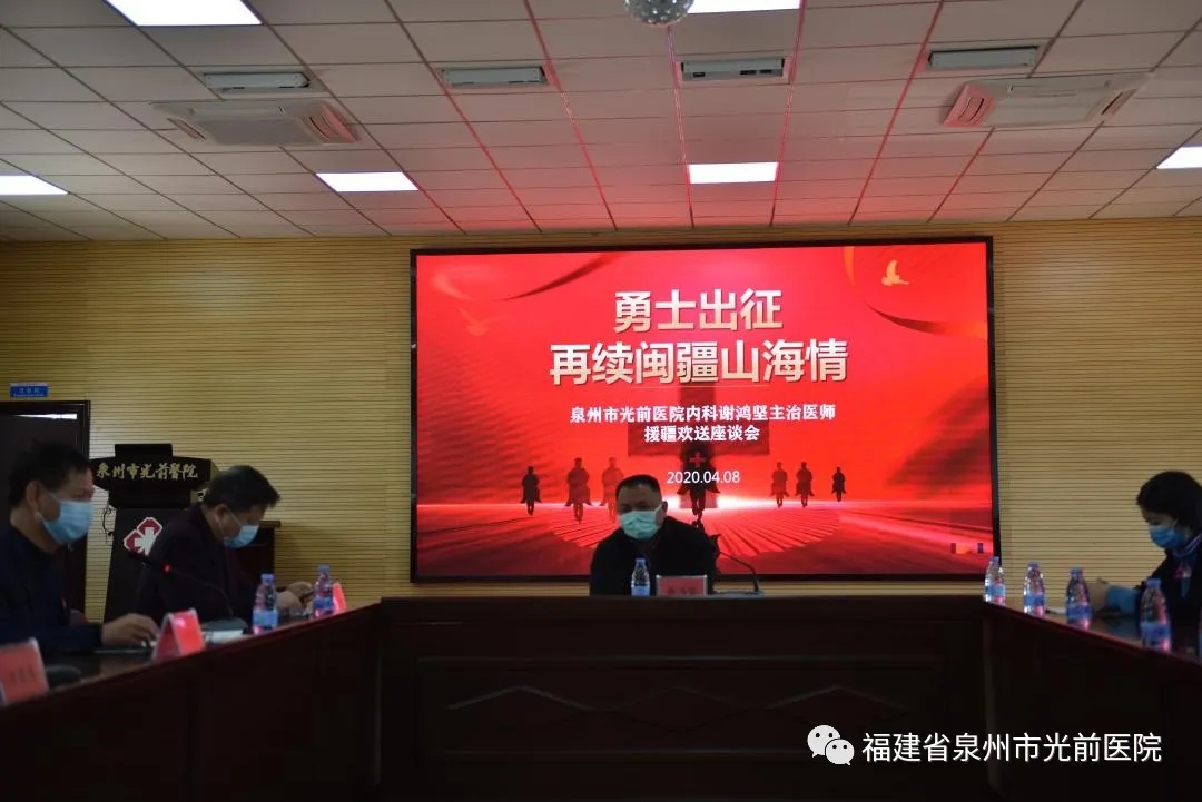 醫(yī)療支邊使命重,再續(xù)閩疆山海情。4月8日上午,我院在行政辦公樓四樓會(huì)議廳舉行座談會(huì),歡送即將啟程前往新疆昌吉醫(yī)療援助的呼吸內(nèi)科謝鴻堅(jiān)主治醫(yī)師。院領(lǐng)導(dǎo)班子全體成員、職能科室負(fù)責(zé)人、內(nèi)二科主任和護(hù)士長,以及曾赴疆參加醫(yī)療援助的本院醫(yī)生參加了本次歡送活動(dòng)。