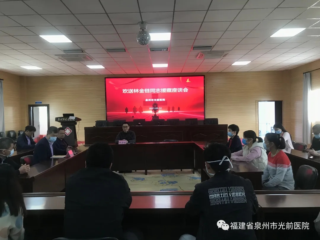 3月12日上午,我院在行政樓四樓會議廳舉行歡送援藏干部座談會,熱烈歡送即將奔赴西藏昌都市洛隆縣人民醫(yī)院開展醫(yī)療援助的中共黨員、外一科副主任林金鏈副主任醫(yī)師。座談會由紀(jì)委書記、副院長李懷陽主持,相關(guān)職能科室負責(zé)人、外一科醫(yī)生護士代表,以及林金鏈同志家屬與會。