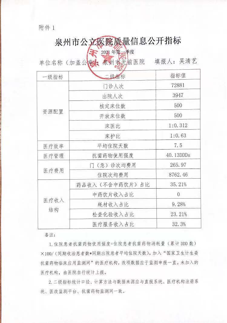 泉州市公立醫(yī)院質(zhì)量信息公開指標(biāo)