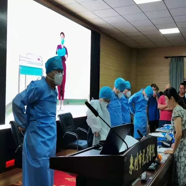 各組考官,對每一位醫(yī)生進行詳細的“指手畫腳”點評,指出在穿脫防護服、隔離衣時容易出現(xiàn)的細節(jié)問題,全方位進行考核,以鞏固“穿脫防護服”等技能。