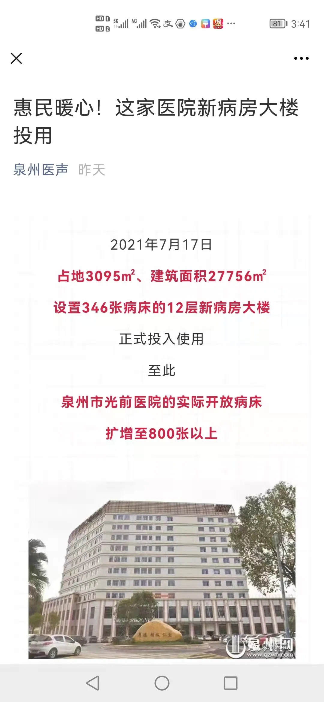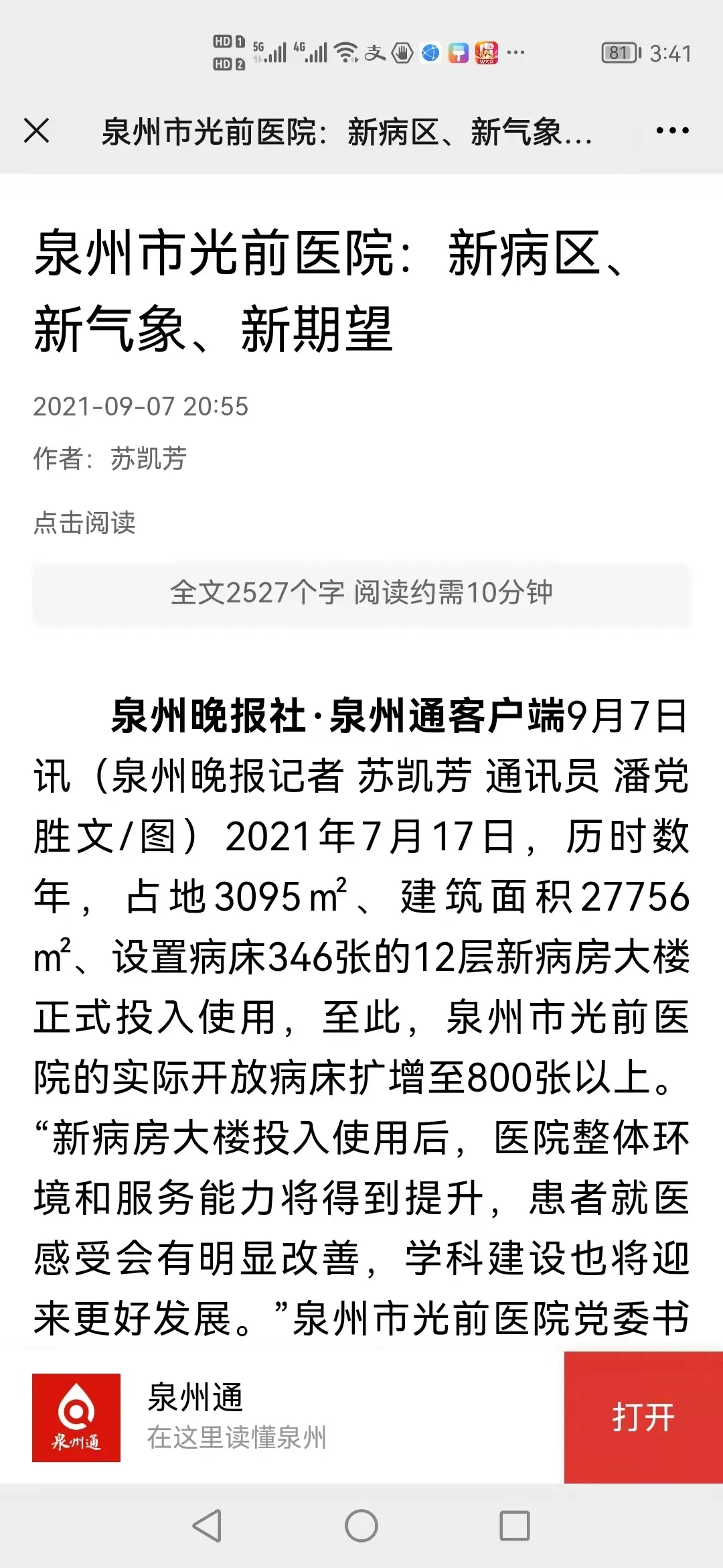 泉州晚報(bào)、泉州通等媒體報(bào)道我院新病房大樓啟用