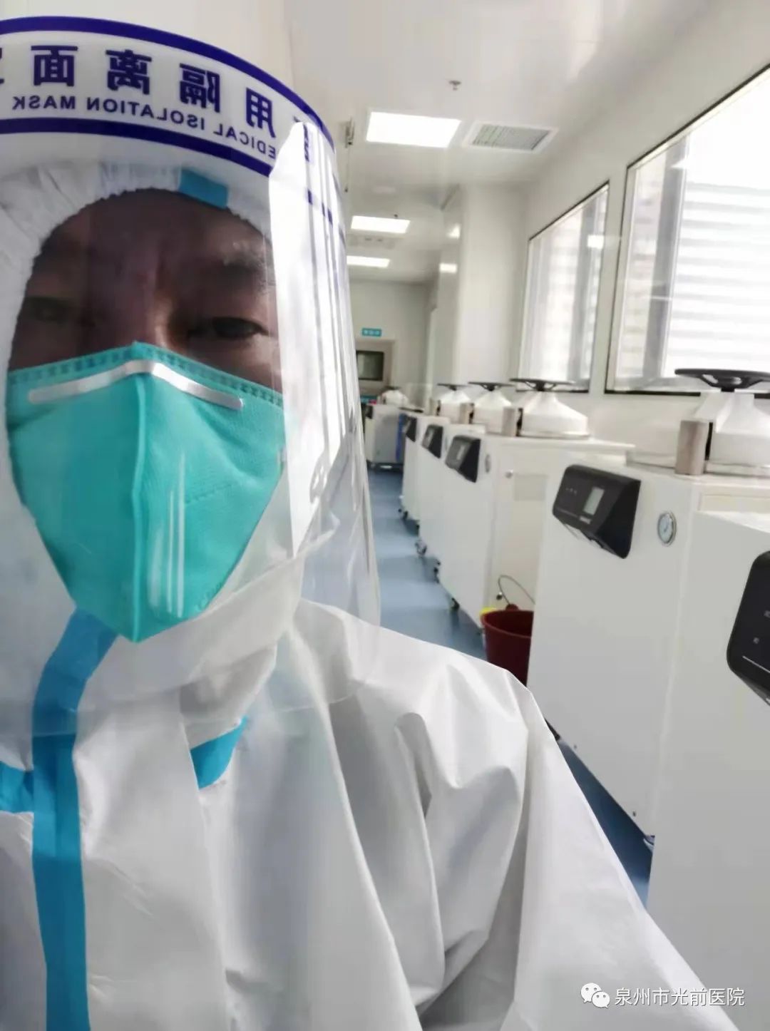 3月14日,接到緊急馳援南安市核酸檢測基地求援,我院供應(yīng)室消毒員莊輝用主動請纓,簡單收拾行裝后立即趕赴基地。