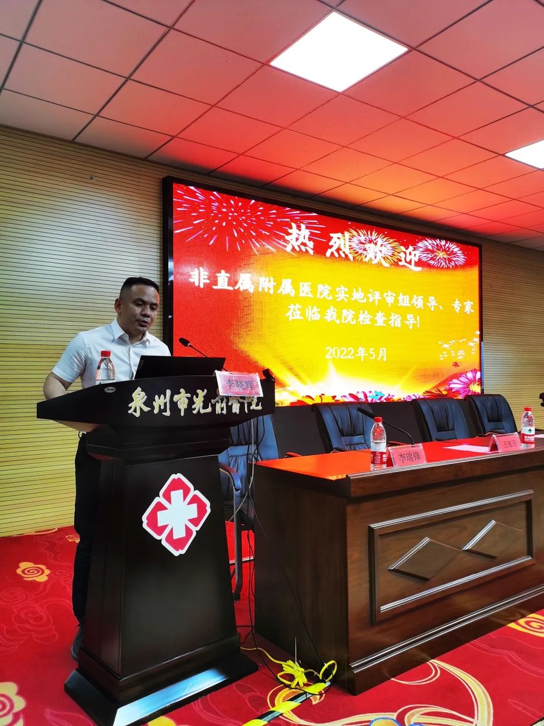 評審匯報會上,我院院長李瑞鋒對專家組的到來表示了熱烈的歡迎和衷心的感謝。他強調,作為南安市東北翼5個鄉(xiāng)鎮(zhèn)片區(qū)診療中心和本土醫(yī)療人才常態(tài)化培訓中心,我院肩負重任。此次評審既是對我院教學管理能力、帶教水平的全面檢驗,也是幫助我院強化規(guī)范教學管理的一次現(xiàn)場指導。我院高度重視,將全面配合好此次復評工作,并以此為契機促進我院醫(yī)教研協(xié)同發(fā)展。