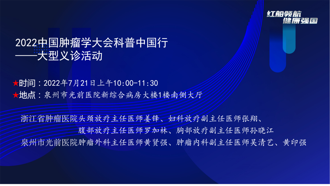 7月21日!中國(guó)腫瘤學(xué)大會(huì)科普中國(guó)行 · 泉州站,邀您與健康同行