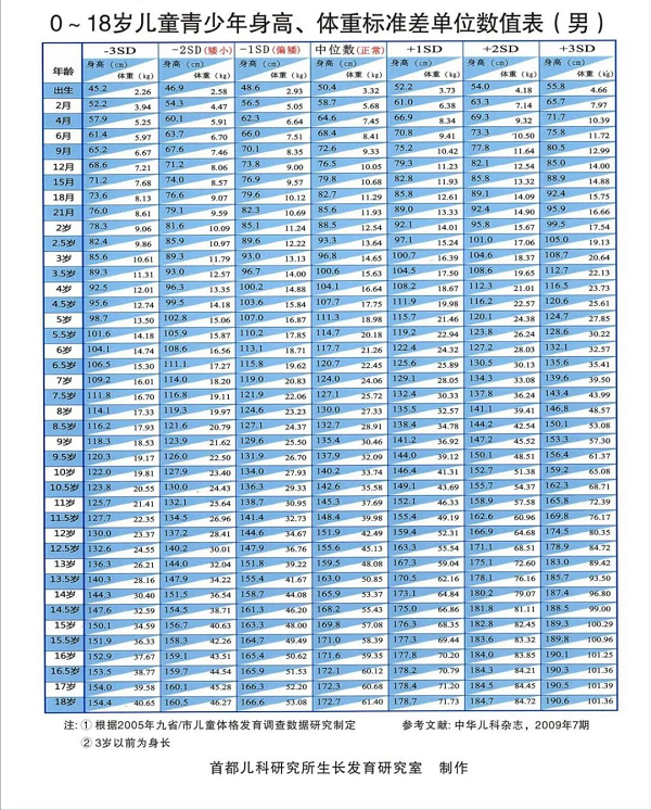 根據(jù)以下身高對照表,就能清楚孩子目前的身高水平