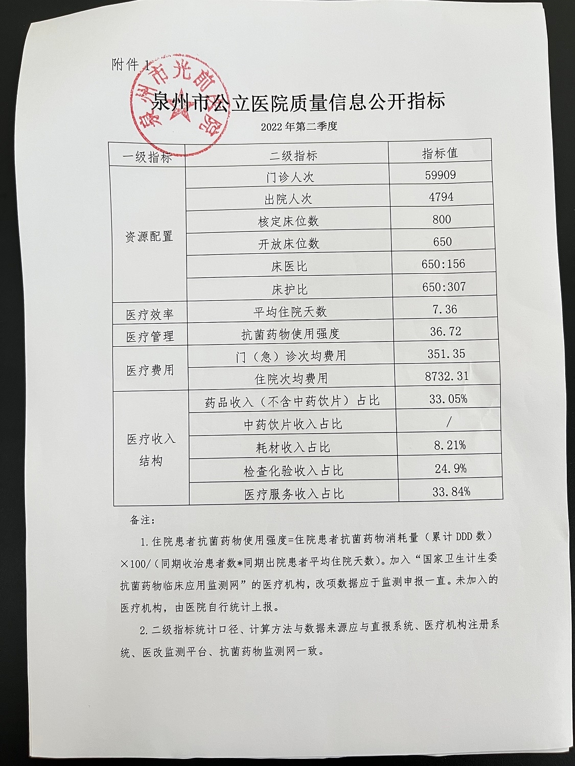 第二季度泉州市公立醫(yī)院質(zhì)量信息公開指標(biāo)