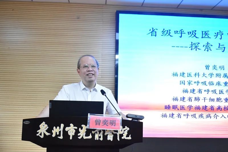 為進(jìn)一步加強(qiáng)呼吸學(xué)科建設(shè),搭建平臺(tái)促進(jìn)學(xué)術(shù)交流,9月9日下午,在行政樓四樓學(xué)術(shù)廳,我院邀請(qǐng)福建醫(yī)科大學(xué)附屬第二醫(yī)院黨委書記、福建省呼吸醫(yī)學(xué)中心主任、福建省睡眠醫(yī)學(xué)高校重點(diǎn)實(shí)驗(yàn)室主任、博士生導(dǎo)師、主任醫(yī)師曾奕明教授來(lái)院開展以“省級(jí)呼吸病醫(yī)療中心創(chuàng)建——探索與實(shí)踐”為主題的專題講座。講座由李瑞鋒院長(zhǎng)主持,院領(lǐng)導(dǎo)、中層干部及相關(guān)學(xué)科專家共百余人參加。