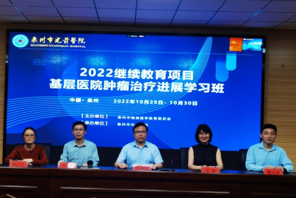 為促進我市基層醫(yī)院腫瘤規(guī)范化治療,進一步提高基層醫(yī)院腫瘤疾病的診療水平,10月29日至30日,由我院主辦的市級繼續(xù)醫(yī)學教育項目“2022基層醫(yī)院腫瘤治療進展學習班(第三屆)”在行政樓四樓學術(shù)廳直播間如期舉辦。此次線上學術(shù)會議由我院放療二區(qū)主任、泉州醫(yī)學會腫瘤放射治療分會副主任委員徐堅主任醫(yī)師主持,來自泉州市第一醫(yī)院、市中醫(yī)院、市兒童醫(yī)院、南安市醫(yī)院、安溪縣醫(yī)院、晉江市安海醫(yī)院,以及部分基層醫(yī)療機構(gòu)從事腫瘤醫(yī)學及相關(guān)專業(yè)的近300位醫(yī)學同仁參與線上學習交流。