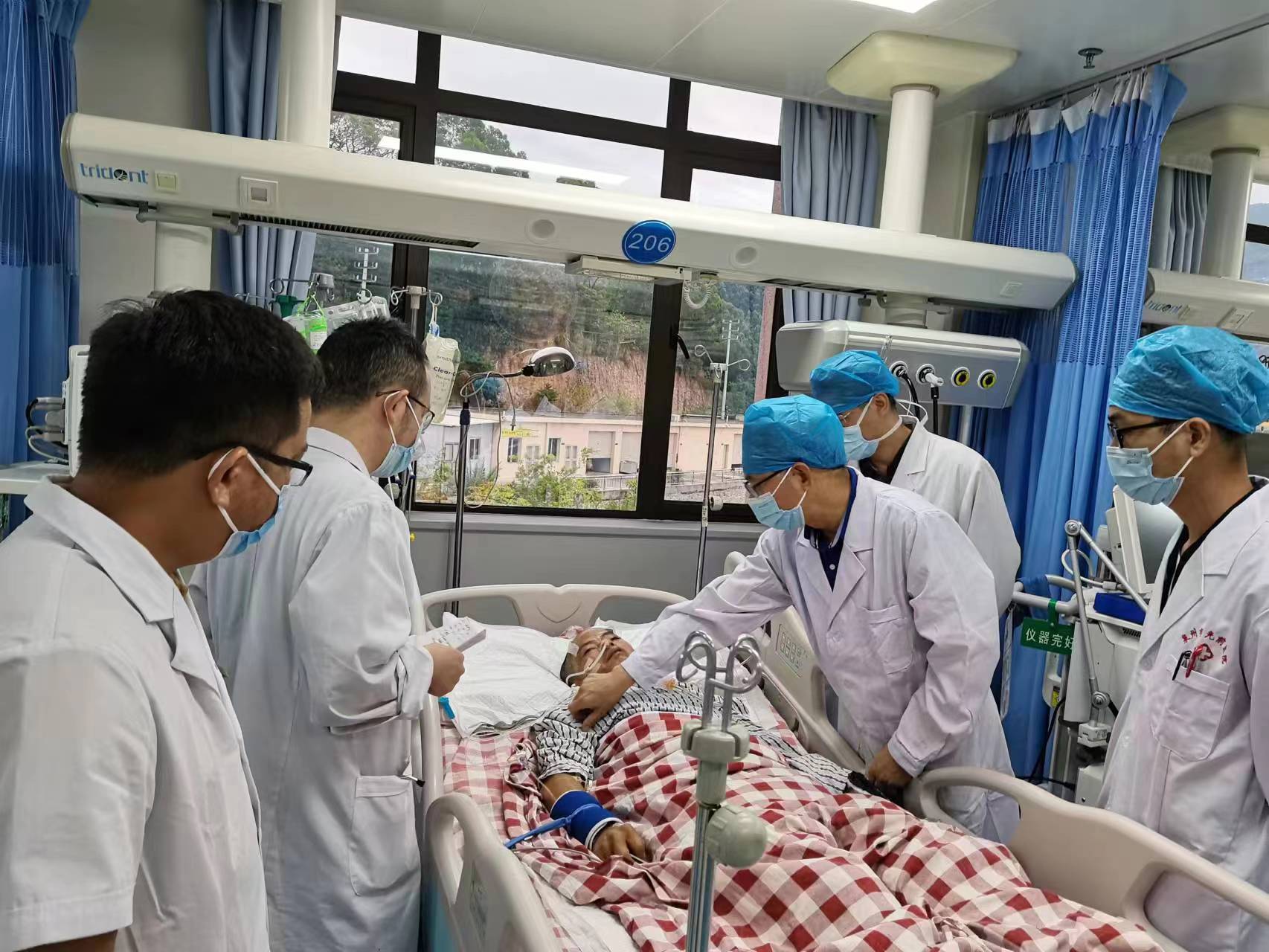 患者潘先生,因騎車(chē)摔倒入院搶救。入院時(shí),潘先生神志已模糊,無(wú)法對(duì)答,經(jīng)相關(guān)檢驗(yàn)檢查,提示顱內(nèi)多發(fā)損傷,我院神經(jīng)外科MDT團(tuán)隊(duì)緊急會(huì)診,評(píng)估病情,并給予緊急處理。潘先生情況不容樂(lè)觀,顱內(nèi)壓明顯增加,出現(xiàn)腦疝,若不緊急手術(shù),顱內(nèi)壓可進(jìn)一步增加,到時(shí)將造成不可逆腦損傷,甚至危及生命。家屬了解到我院與福醫(yī)大附二院建立神經(jīng)外科專(zhuān)科聯(lián)盟,每天有專(zhuān)家值班在線指導(dǎo),可緊急來(lái)院幫扶搶救,遂放棄轉(zhuǎn)院,決定入院治療。