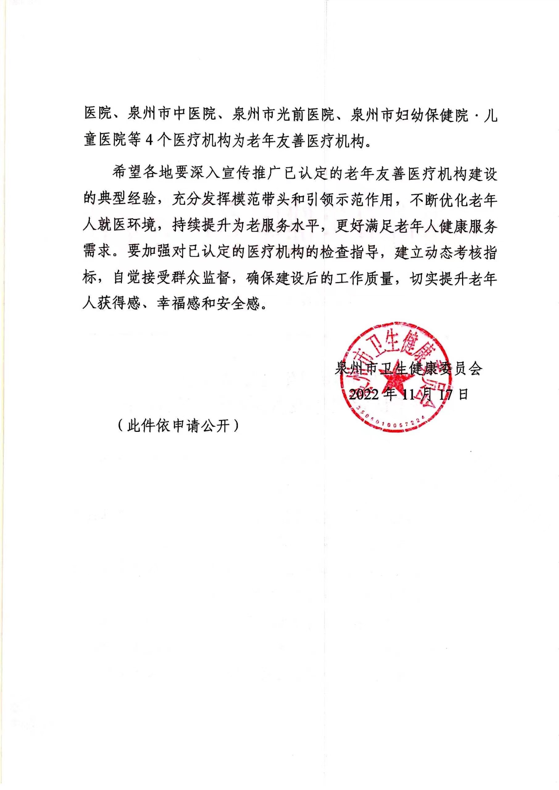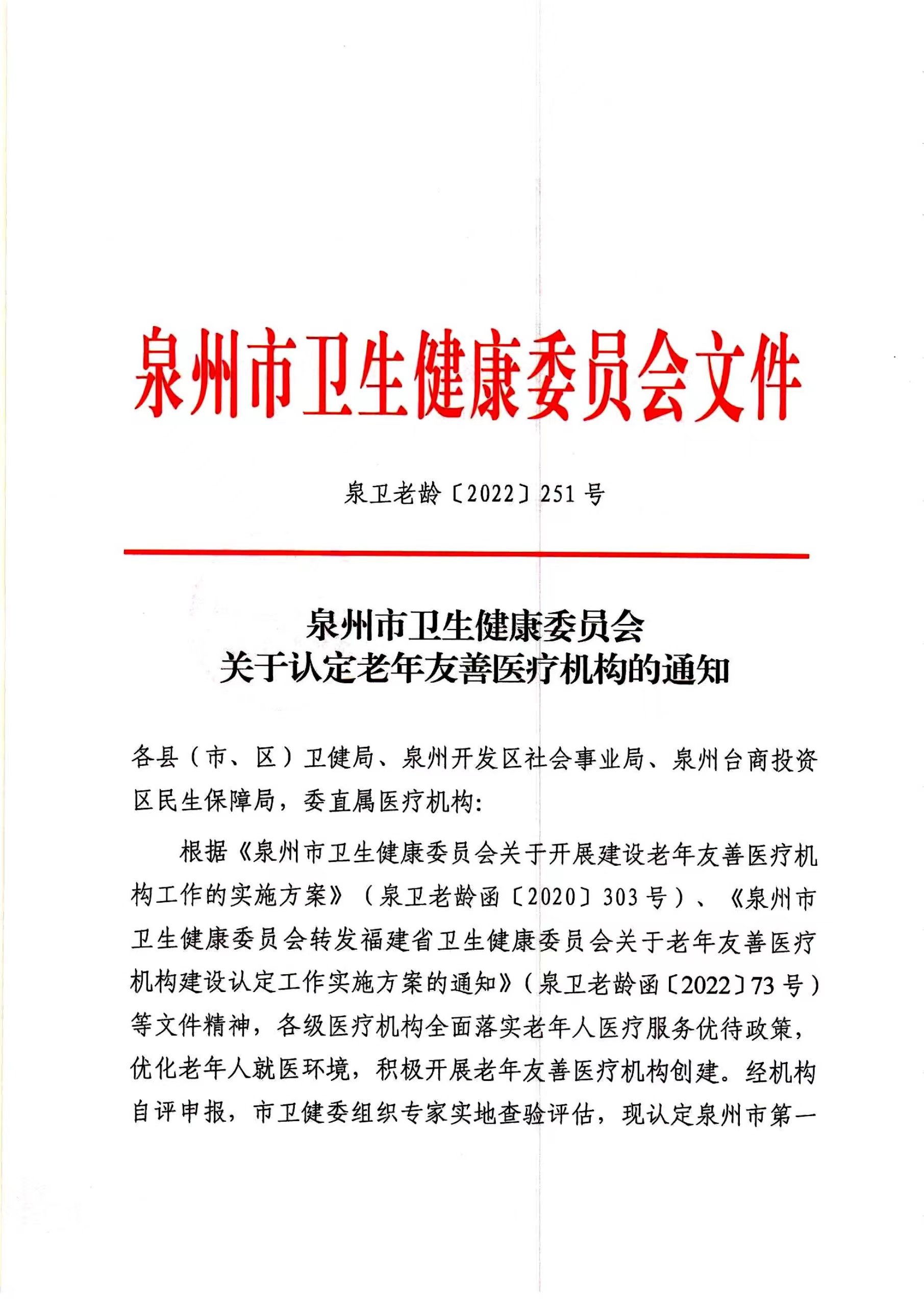 優(yōu)秀!我院被泉州市衛(wèi)生健康委員會認(rèn)定為“老年友善醫(yī)療機構(gòu)”