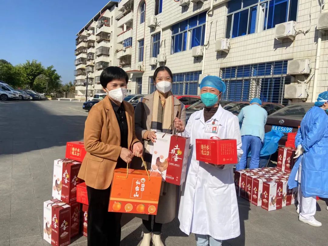 陳書記一行人為奮戰(zhàn)在一線崗位的醫(yī)務(wù)人員送上雞蛋、橙子、面線共300箱的慰問品,向始終堅(jiān)守陣地、全力以赴守護(hù)群眾身體健康和生命安全的白衣天使致以敬意與感謝。同時(shí),詳細(xì)了解當(dāng)前醫(yī)療救治、藥品供應(yīng)、人員配備和保障等情況,叮囑醫(yī)務(wù)人員要注意保暖,保護(hù)好自己。