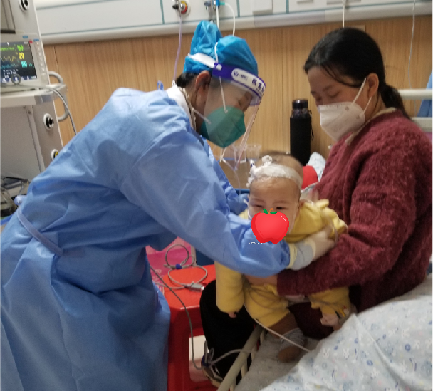 12月29日中午1點(diǎn),“護(hù)士、護(hù)士……,快看看我的孩子。”只見(jiàn)一位女士抱著患兒急匆匆沖到護(hù)理站,當(dāng)班護(hù)士立即迎上去,只見(jiàn)小朋友面色、口唇蒼白、呼吸喘促、四肢末端稍涼,立即遵醫(yī)囑安置搶救病房,給予吸氧、吸痰、心電、血氧監(jiān)護(hù)、補(bǔ)液等搶救措施?;純后w重大于同月齡孩子,靜脈通路難建立,兒科團(tuán)隊(duì)立即全力進(jìn)行搶救。因其他家屬都生病了,患兒媽媽孤身一人難于照顧只有5月齡的孩子。見(jiàn)此,各班護(hù)士主動(dòng)幫忙照顧、倒水、買(mǎi)飯、送生活物資等等,為患兒及家屬送去醫(yī)院滿滿的關(guān)懷。經(jīng)過(guò)幾天積極治療和悉心護(hù)理,患兒病情逐漸穩(wěn)定,轉(zhuǎn)入普通病房。兒科每一位醫(yī)護(hù)人員都欣喜不已。