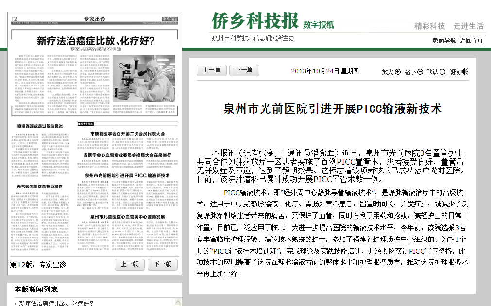 我院引進開展PICC輸液技術(shù)(《僑鄉(xiāng)科技報》、《泉州醫(yī)界》)