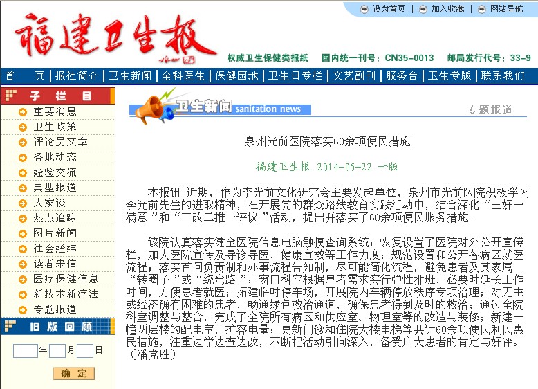 泉州光前醫(yī)院落實60余項便民措施(《福建衛(wèi)生報》)