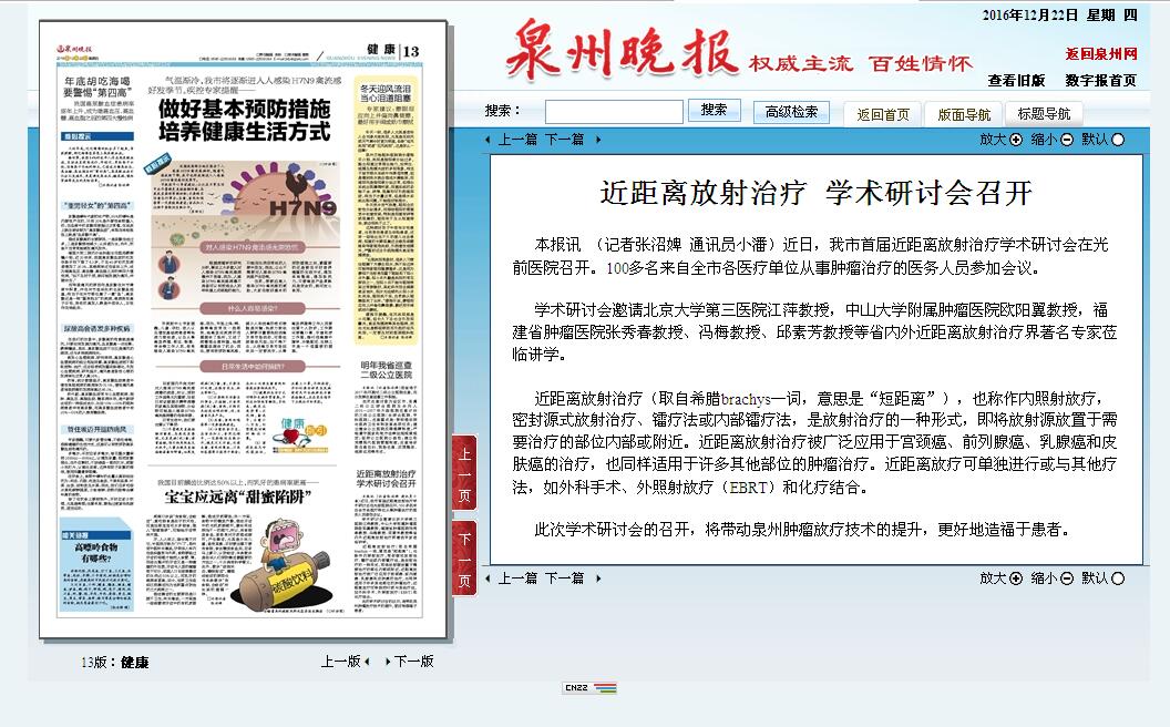 舉辦泉州市首屆近距離放射治療學(xué)術(shù)研討會(huì)(《泉州晚報(bào)》)