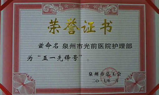 熱烈祝賀我院護(hù)理部榮獲泉州市“五一先鋒號”