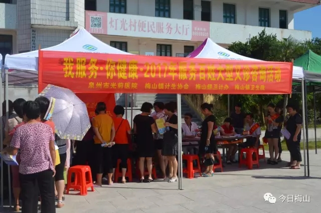 9月15日上午,由泉州市光前醫(yī)院、梅山鎮(zhèn)計(jì)生協(xié)會(huì)、梅山鎮(zhèn)衛(wèi)計(jì)辦、梅山鎮(zhèn)衛(wèi)計(jì)服務(wù)中心及梅山鎮(zhèn)衛(wèi)生院聯(lián)合舉辦的“關(guān)愛(ài)女性健康、促進(jìn)社會(huì)和諧”健康知識(shí)講座暨“我服務(wù) 你健康”2017年服務(wù)百姓大型義診咨詢(xún)活動(dòng)在梅山鎮(zhèn)燈光村村民休閑廣場(chǎng)舉行。——