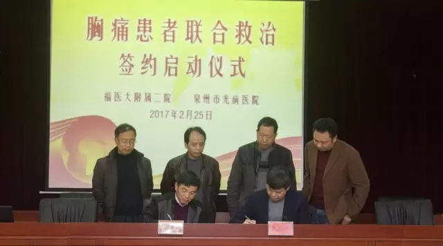 今年2月,我院與福建醫(yī)科大學(xué)附屬第二醫(yī)院在本院行政四樓會(huì)議廳隆重舉行胸痛患者聯(lián)合救治簽約啟動(dòng)儀式。通過雙方構(gòu)建的對(duì)急性胸痛患者協(xié)同快速救治體系,可大大縮短救治時(shí)間,降低急性胸痛的死亡率,提高急診胸痛患者的整體救治水平。