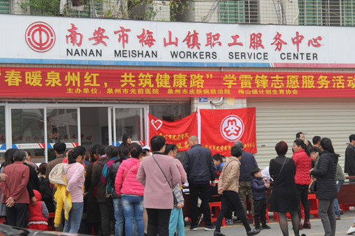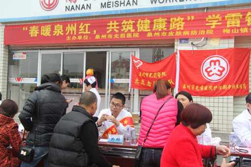 春暖泉州紅,共筑健康路。3月17日上午,我院攜手泉州市皮膚病防治院、梅山計(jì)生協(xié)會(huì)在梅山鎮(zhèn)職工服務(wù)中心開(kāi)展“春暖泉州紅,共筑健康路”的學(xué)雷鋒主題志愿活動(dòng),為周邊群眾送醫(yī)送藥義診。此次活動(dòng),我院及皮防院選派了多名臨床經(jīng)驗(yàn)豐富的專家到場(chǎng)義診,為現(xiàn)場(chǎng)群眾做健康體檢、免費(fèi)診治、普及健康知識(shí)、倡導(dǎo)健康生活方式,并對(duì)現(xiàn)場(chǎng)群眾提出的健康問(wèn)題進(jìn)行答疑解惑?;顒?dòng)持續(xù)了兩個(gè)多小時(shí),共接診群眾300余人次,對(duì)癥免費(fèi)發(fā)放了10余種價(jià)值兩千余元的防治藥品,分發(fā)了高血壓、糖尿病等常見(jiàn)病和多發(fā)病相關(guān)健康知識(shí)宣傳手冊(cè)100余份。志愿者們熱情周到的服務(wù),得到參與群眾的肯定和贊揚(yáng)。