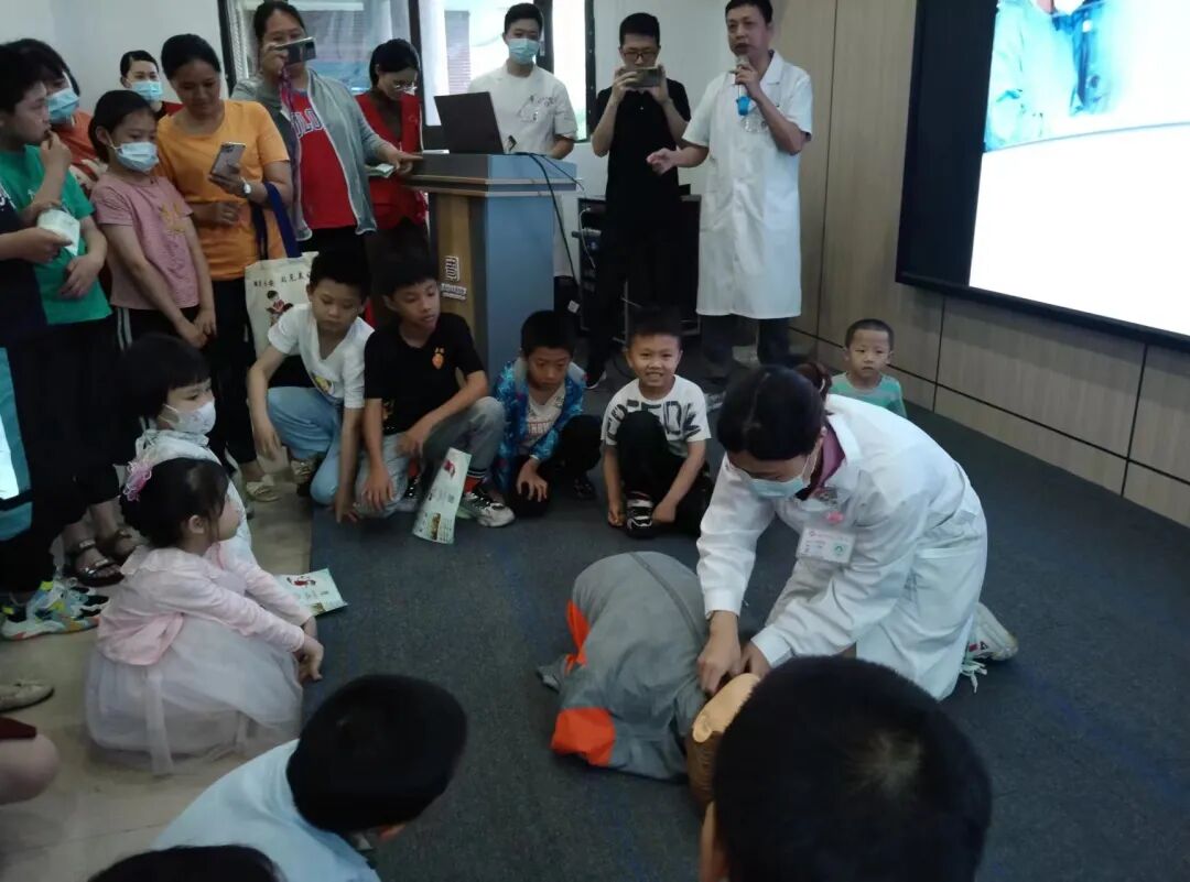隨后,急診科護(hù)士講授并演示了心肺復(fù)蘇的按壓手法和海姆立克法急救法。在戴主任的熱情邀請與鼓勵下,現(xiàn)場的小朋友和家長們積極參與了模擬操作,護(hù)士手把手地指導(dǎo)大家對人體模型進(jìn)行急救練習(xí),通過模擬實訓(xùn),不僅能糾正操作中的錯誤動作,還能準(zhǔn)確掌握急救技能。現(xiàn)場的家長和小朋友紛紛表示受益匪淺,活動有趣且有教育意義,希望下次還有機(jī)會參加相關(guān)培訓(xùn)活動。
