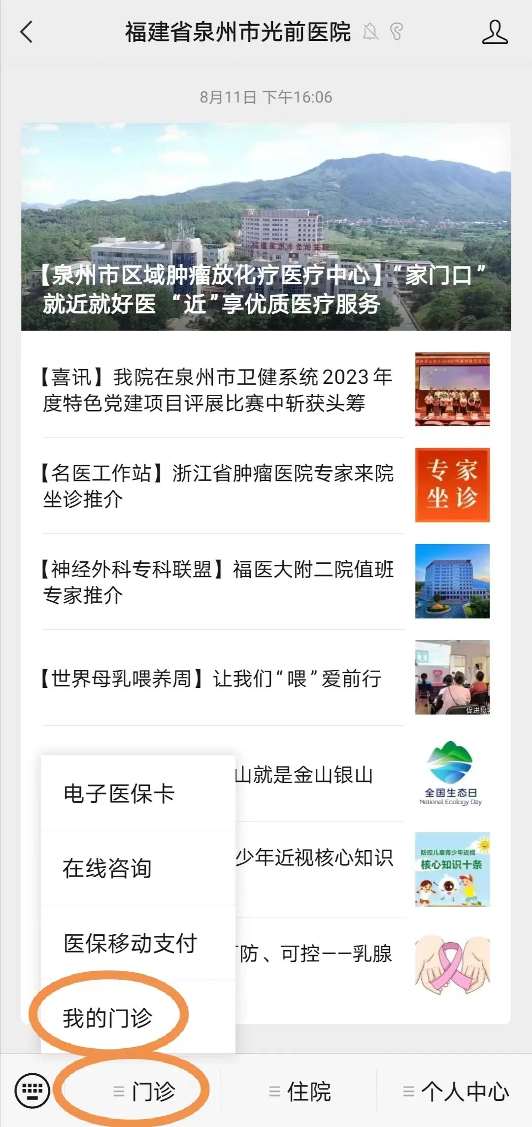 1.掃描下方二維碼或微信搜索“福建省泉州市光前醫(yī)院”關(guān)注我院微信公眾號(hào)