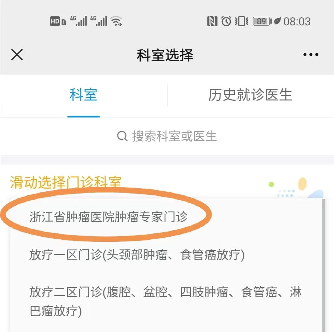 4.選擇“浙江省腫瘤醫(yī)院腫瘤專家門診”